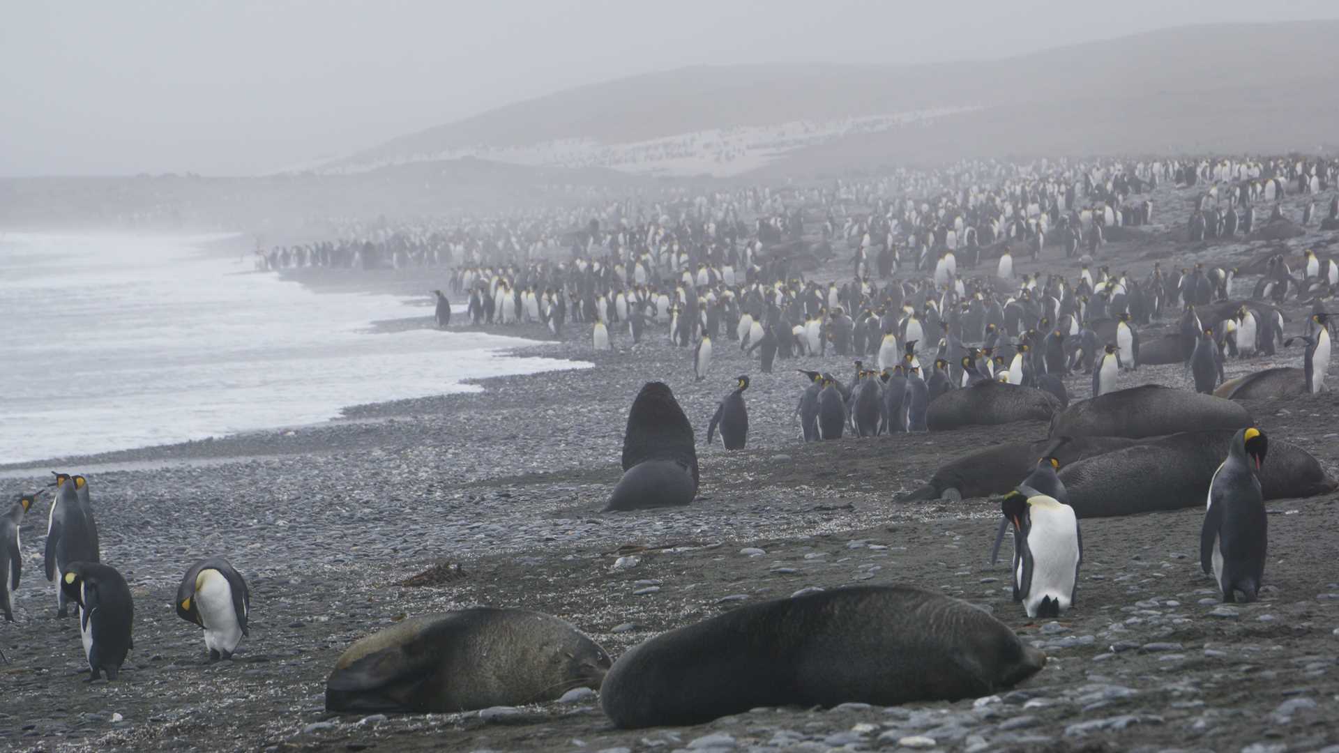 The fog kept our initial view of South Georgia hidden from us as we approached our destination in the early hours of the morning. But as we got closer, the island started to take shape. There was a buzz in the air and excitement filled the ship as we sat down for breakfast, eager to get the adventure started. As our brave drivers navigated through the surf, around a curious leopard seal, and onto the beach, words couldn’t describe the scene that lay before us. Salisbury Plain is home to one of the largest king penguin colonies on South Georgia, with over 100,000 nesting pairs and their chicks. A flood of black, white, and gold stretched as far as the eye could see. But the penguins aren’t the only residents of this particular beach. Male fur seals were scattered throughout, claiming their own territories for when their time comes to find a mate. And big bull elephant seals made their presence known with an occasional grunt or by slinking across the sand. Southern giant petrels and Antarctic skuas patrolled the skies, seeking the perfect opportunity for an easy meal. There is so much life here, it’s almost overwhelming. All of our senses were acting on overdrive, trying to soak it all in. But the adventure for the day wasn’t over.