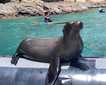 During lunch, National Geographic Sea Bird repositioned to an anchorage in the nearby Inian Islands. We boarded our inflatable boats to cruise through this productive area near the entrance to the Pacific Ocean. The amount of wildlife among these islets is incredible. Humpback whales nearly surrounded the boats as they worked the nearshore for small schooling fish. The deep phthalo green waters support enough sea life to feed hundreds of Steller sea lions, thousands of beautiful seabirds, and even the dozens of sea otters consuming urchins and crabs among the kelp forests.