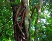 This morning found us anchoring off Punta Pitt, the northwestern-most corner of one of the oldest islands in the archipelago of Galapagos. A dramatic landscape was laid out before us, perhaps exactly what Charles Darwin first saw on his arrival to these islands almost one hundred and eighty-eight years ago. Formed by the violent contact of molten magma and cold sea water, the original tuff cones of this area have been eroded away over the millennia to create fantastic sharp ridges and steep v-shaped ravines. The vegetation is sparse and adapted to the aridity of the region: the thorny scutia spicata var. pauciflora and the salt-tolerant bush cryptocarpus pyriformis as well as the unique clubleaf nolana galapagensis. Our explorations took the form of a serious hike up one of these ravines until we reached a plateau of open vistas. At the far end were low trees and bushes where red-footed boobies are nesting and the ocean seems to extend forever north. A recent census indicates their numbers to be increasing, a positive consequence to increased efforts by the Galapagos National Park to control introduced species such as feral cats and rats. Both these species arrived several hundred years ago with the first sailing vessels, and their descendants today are the focus of hard work, as they have a serious impact on many vulnerable, endemic species found no-where else in the world except Galapagos.