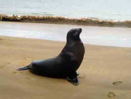 In the distance the tall cliffs of yellowish tuff rock looked impressive with a soft mist covering their peaks, creating a unique landscape as well as the best weather conditions to hike along the steep and narrow trail that lead to the highest part. After breakfast we landed on the green sand beach, where some sea lions played indifferently. While in the wall of the cliffs, red footed boobies with their mating calls were the delight of our guests. We observed several of them circled in the air showing off their blue bills and their bright red feet as if looking for a new mate. Much higher, frigate birds glided, waiting the opportunity to harass and steal the fish caught by other sea birds.