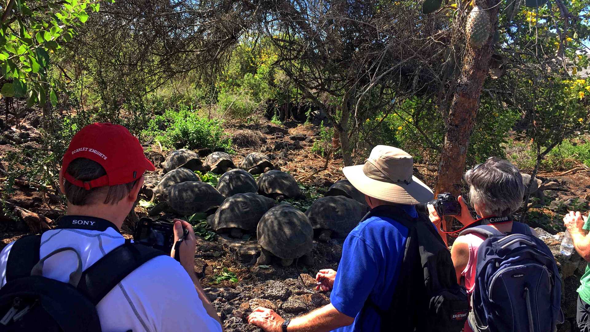 The largest human population of the Galapagos Islands is located on Santa Cruz Island, specifically on the town of Puerto Ayora, which we visited today. Our day started with a visit to the Charles Darwin Research Station and the Galapagos National Park headquarters. Here, we learnt about the important efforts that scientists and rangers are doing to protect the unique ecosystems of the Galapagos. We were lucky to visit the recently opened “Tortoise Route” exhibition, where one can see the emblematic giant tortoises at different stages: from the little baby tortoises which just hatched this year to the giant adult specimens that where collected on different islands of the archipelago. We also visited the exhibition room where the Lonesome George, an animal that embodies the extinction of species as result of human interference. There is a strong message behind this exhibition, and it takes us to reflect on the relationship between people and biodiversity. After visiting Lonesome George, we visited Diego, the male tortoise from Española Island that has helped bringing the population of Española tortoises from 14 in the 1970s to a current population of more than 2000 individuals. This success story gave us a broader perspective of the challenges and progresses made along the history of the oldest national park of Ecuador.
