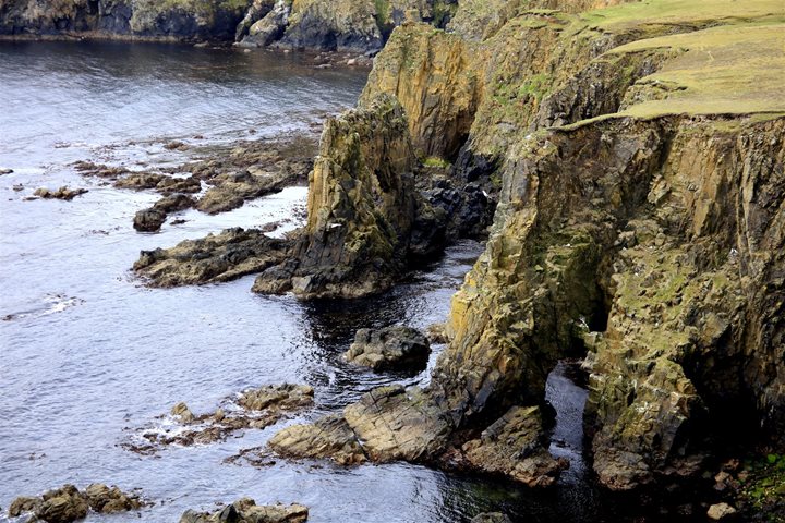 It is sometimes the case that as a staff member, you do not have the time to look outside before heading out for the days adventure. You may have gear to prepare, or meet a guest with questions, or a host of other circumstances that keeps you in the dark about what lies outside the hull of the ship. This morning was one of those times for me. My first glance of the outside was when I was at the side gate, getting into my zodiac to prepare it for the guests that would soon be climbing aboard for the morning outing. Before me was the open ocean. I stowed the lines, checked my fuel, and then began to motor to the other side of the ship where the island of Little Skellig would be in my sight. As I rounded the bow I started to hear the calls of seabirds and then, coming into view was the sight of tens of thousands of northern gannets swirling above this island of rock. It was an overwhelming experience. As I came to my senses, I took note of my surroundings as the awe of the moment slowing started to sink in. Lines of gannets came into the island, returning from their wanderings at sea. Then, for every bird that returned home, another, on a ledge, would take flight to return to the sea, for its turn at feeding. On the island, each layer of stratified sandstone was filled with birds, each finding its special spot on which to make its nest. For the next few months, this rock will be the site of a wildlife spectacle of new life, and death, before, nesting season over, the birds leave it on its own, a lonely outpost in the throes of the North Sea. Once the guests had joined me, we motored around Little Skellig for a closer look. Swirls of birds flew above us, and grey seals swam as close to us as they dared before making their get-away with a splash. Our time at the colony went quickly, and then it was time to return to the ship for the rest of the morning.