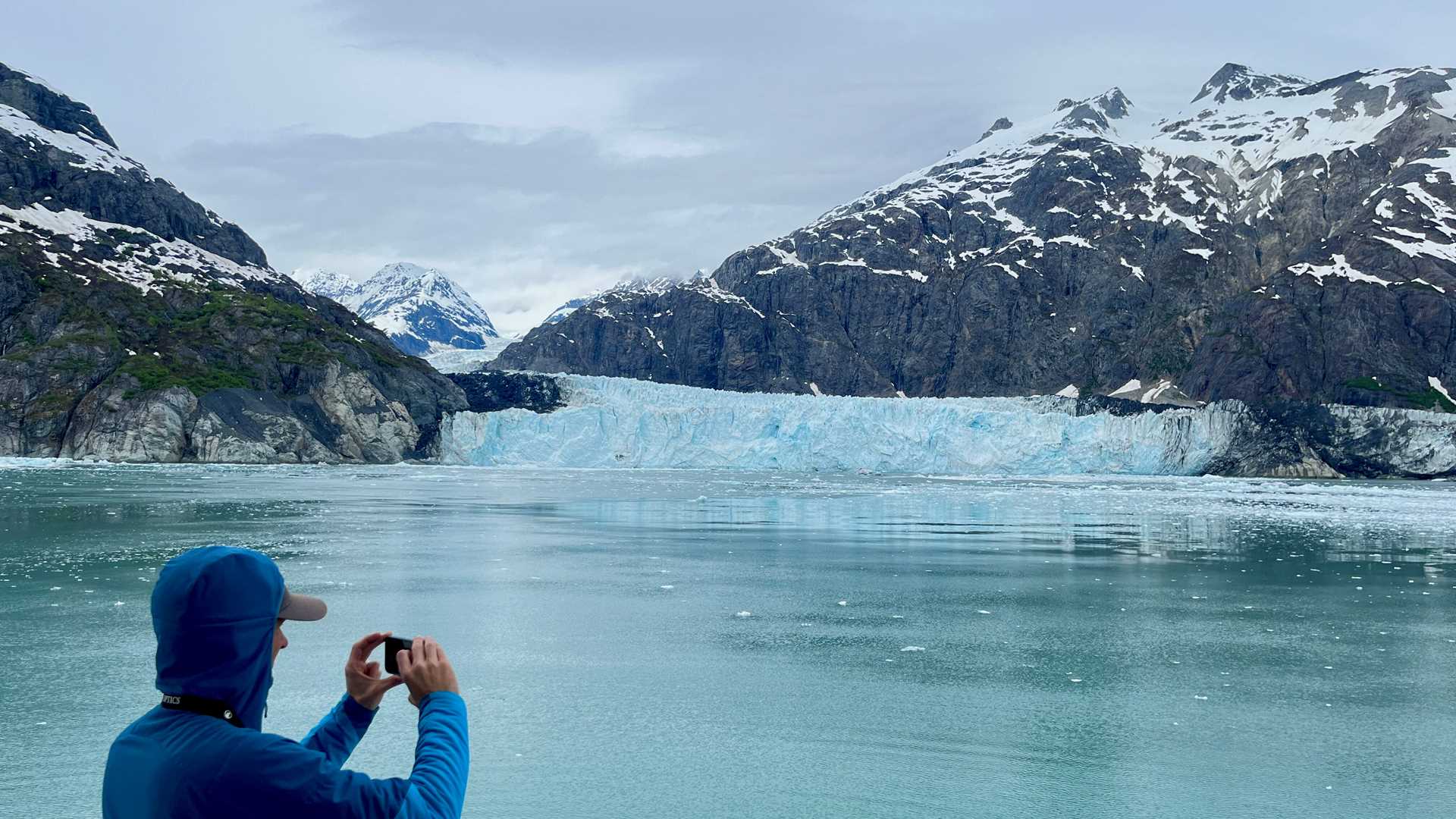 Glacier Bay Day never disappoints, and our experience today sure lived up to the bay’s notoriously exciting reputation. An early wakeup call invited us to witness Margerie and Gran Pacific Glaciers from the bow of the ship. As we neared the face of Margerie, a tidewater glacier standing around 200 feet in height and 21 miles in length, we were astounded by her sheer size, but something else caught our eye on the shoreline. Two huge coastal brown bears wandered the rocky beach near the tree line. It became evident that it was a male and a female, and the male began to initiate mating. Unsure if he was attempting to induce heat or inseminate the female, guests watched, amazed by this spectacle that is not often witnessed by such a large crowd. After about fifteen minutes of copulation, the bears retreated into the bushes. We recognized our luck as the sun peeked out from behind the clouds, and otters floated amongst bergy bits. I can’t imagine a more serene landscape to gaze upon through a window while enjoying a freshly prepared breakfast and hot coffee. As we bid Margerie adieu, a massive calving event sent waves rippling as if to send us on our merry way.