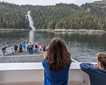 Our luck did not waver as the day pressed on. We found abundant marine and terrestrial wildlife in each hotspot we visited. Humpback whales slapped their massive pectoral flippers and breached several times as we cruised by Gloomy Knob, a site known for the presence of mountain goats. The tall, granite cliffs were peppered with white mountain goats perched high on steep ledges. Diving humpbacks flaunted their flukes only a few hundred yards from some harbor porpoises. These were just a few of the mammals accompanying us along our journey to South Marble Island. We arrived to what sounded like more than a hundred Steller sea lions noisily arguing over who would reign over the highest and warmest spots on the haul out rocks. The largest bulls proudly held their blubbery necks high in the air, establishing their dominance. South Marble Island is home to more than just pinnipeds, and our resident bird expert Alex Harper excitedly announced his bird sightings. Tufted puffins, pigeon guillemots, and black-legged kittiwakes were the highlights of Glacier Bay. We continued on and headed for Bartlett Cove, hopeful for a spot to dock.