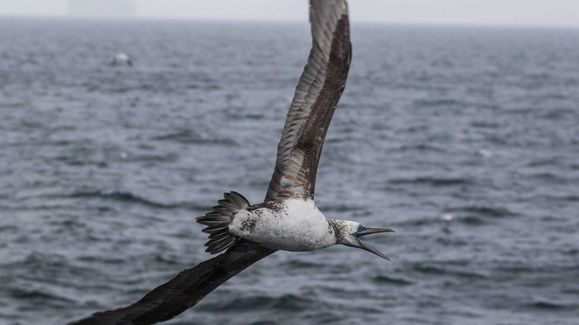 The feeding frenzy lasted long enough for everyone to get out on deck and to watch these glorious creatures. Life and abundance was overflowing right before our eyes. The captain launched a Zodiac into the tumultuous seas, and the expedition diving team ventured out to capture underwater footage of the torpedoing gannets and the graceful, curious toothed whales.