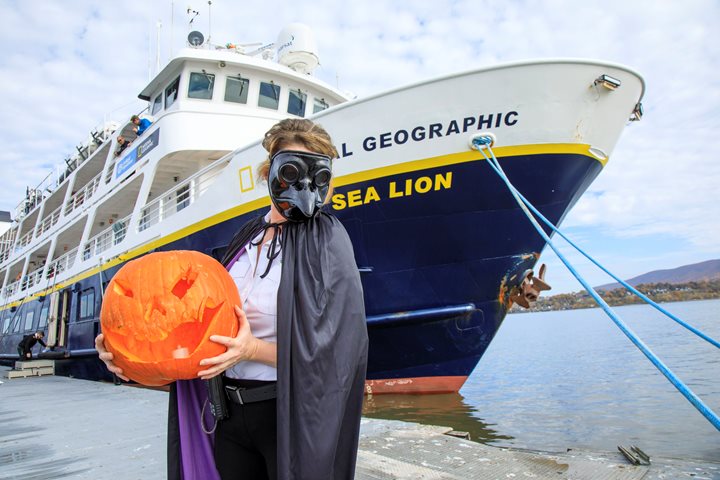 Cruising past the numerous red, orange, and yellow hues of fall foliage, National Geographic Sea Lion came upon the Hudson-Athens Lighthouse. Everyone got their cameras ready to capture the eerie scene as fog rose slowly above the Hudson River. After circling the lighthouse a few times, we continued toward the Catskills. We were given the opportunity to visit two state historic sites: Thomas Cole’s house and the house of Frederic Church, the Olana. The house and art studio hold original sketches and masterpieces by Thomas Cole, one of the original artists of America’s first art movement, the Hudson River School. Viewing the intricate pieces inspired a few individuals, and after soaking in the essence of Thomas Cole, some guests tried their hand at painting the surrounding landscape. We also got the opportunity to visit Olana, a Persian style historic house museum that was once owned by Frederic Church, another member of the Hudson River School. After getting our fill of these historic places, it was time to have lunch before our next adventure. In the afternoon, we went to Churchtown Dairy, a dairy farm that hosts an annual farmers market. Young calves, goats, and dairy cows were eager to receive affection. Petting a large fuzzy animal was the perfect ending to an incredibly enriching day.