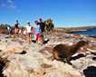 Happy Thanksgiving from Antarctica! Having found a large piece of shore-fast ice (sea ice that is attached to land and therefore stable) the captain parked the ship in the sea ice for the evening. We woke up to a cloudy but beautiful day, the gangway was lowered after breakfast and we were able to go for a walk on the frozen ocean. Many didn’t think about the 1,500 feet of ocean beneath our feet or the six feet of ice we were walking on. The clouds lifted and the surrounding landscape was exposed. Beautiful mountains and tall cliffs were all around us. Several seals and penguins came out of the water near National Geographic Explorer to see what all the fuss was about. Many guests built snowmen, some walked the perimeter, a few even jogged for a unique Antarctic workout. The hotel department served hot chocolate with an added kick to top off our experience. After a group photo was taken in front of the bow it was time to extract the ship from her icy berth and move on to other adventures.