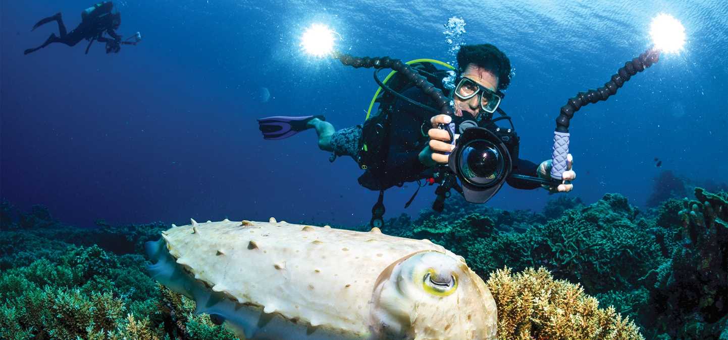 Nearly every expedition aboard the fleet sails with an undersea specialist who serves as our eyes and ears below the waves, capturing photos and videos and bringing our guests firsthand perspectives of the marine world. Throughout the voyage, they film their dives and manipulate high-definition underwater imaging equipment such as Remotely Operated Vehicles (ROVs) to reveal surprises in the ocean deep—from bright purple corals in Alaska to delicate sea stars in the frigid waters off the Antarctic Peninsula. ...