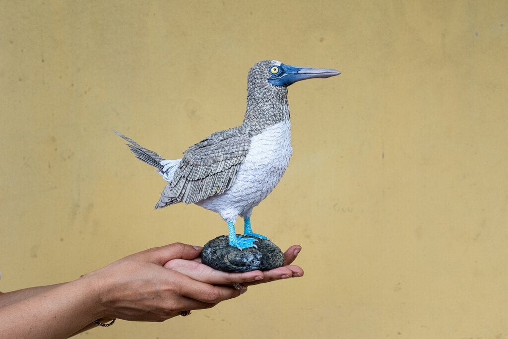 In 2025, the Artisan Fund hosted Indian artist Niharika Rajput in Galápagos to facilitate a hands-on workshop for 12 local artisans. Renowned for crafting detailed, realistic bird sculptures from paper, Niharika shared her knowledge and skills over five days, guiding everyone through the step-by-step process of building blue-footed booby sculptures from wastepaper, wire and clay.