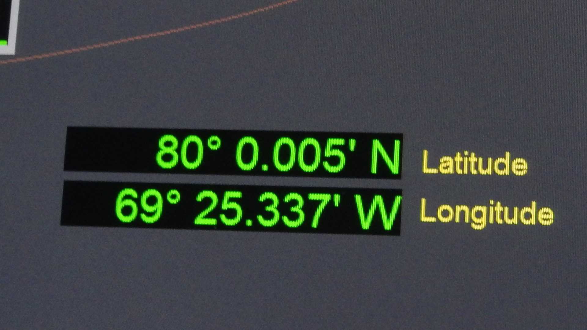 The name of this expedition is Epic 80! The longest expedition of the Arctic season that would encompass two landmasses and many islands, view wildlife, and learn about the modern and ancient cultures that live and lived here. It has been epic in many ways. Incredible views of iconic Arctic species and great weather to create opportunities for finding the wildlife. Today though was not so much about wildlife but making our goal of 80 degrees north latitude. The Captain and expedition leader kept a wary eye on both the wind and ice charts to see when a window would open up and give the ship her opportunity. Today was the day. With little to no wind the ice movement would be predictable so we started north with Ellesmere Island on our port side and Greenland to our starboard. By breakfast we were north of 79 and making good distance. There was ice present but it was smaller floes easily navigated through. By lunch we were getting closer. After lunch an announcement came from the bridge that we were just a few nautical miles from our goal. The ice was getting thicker and the floes larger, but when you attempt to get just 600 nautical miles from the North Pole, ice will be encountered. Then the captain found a lead and pushed the ship towards it. Cameras were clicking on the bridge to commemorate the crossing as it was shown on the many GPS units present on the bridge. The master blew the ships horn and all celebrated.