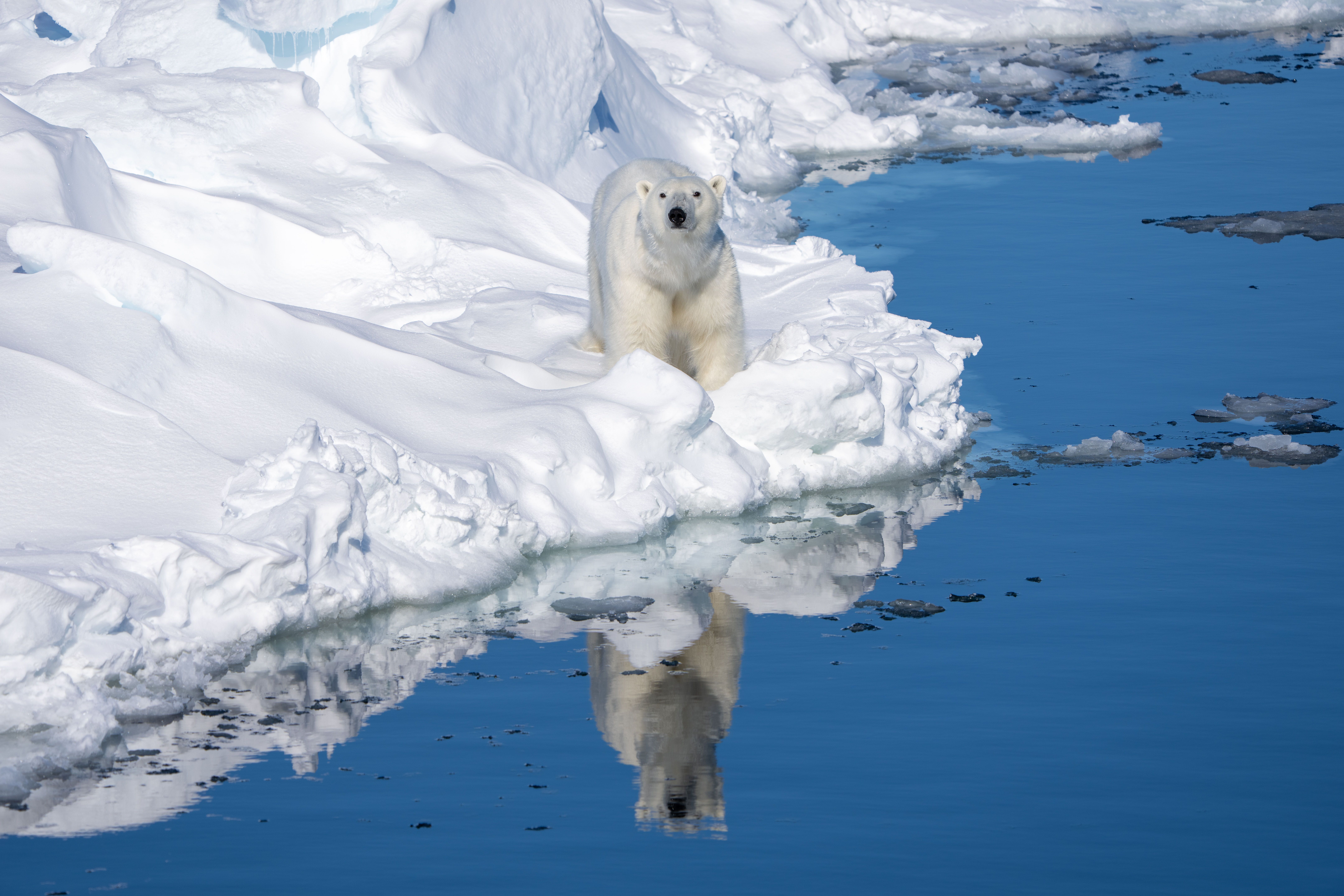 This day was beyond amazing. We ventured north of Svalbard in the hope of polar bear and beautiful ice sightings, and both were delivered to us. The call for our first bear of the day came at 06.00, a beautiful female with a recent kill. But just one hour later we spotted a second bear, also with a recent kill. The bears kept appearing and soon, we were yet again called to the bridge to watch a young and curios bear check us out. We continued, and after passing 81 degrees north it was time for an ice walk on an ice floe. Winds were still and just as we were wrapping up, the snow started to gently fall. It was absolutely fantastic! The conditions were perfect to continue, and we passed 82 degrees. Captain Martin took us even further north before the ice stopped us, yet we set a new record for Lindblad Expeditions by taking us to 82 degrees and 15 minutes. This will definitely be a day to remember.