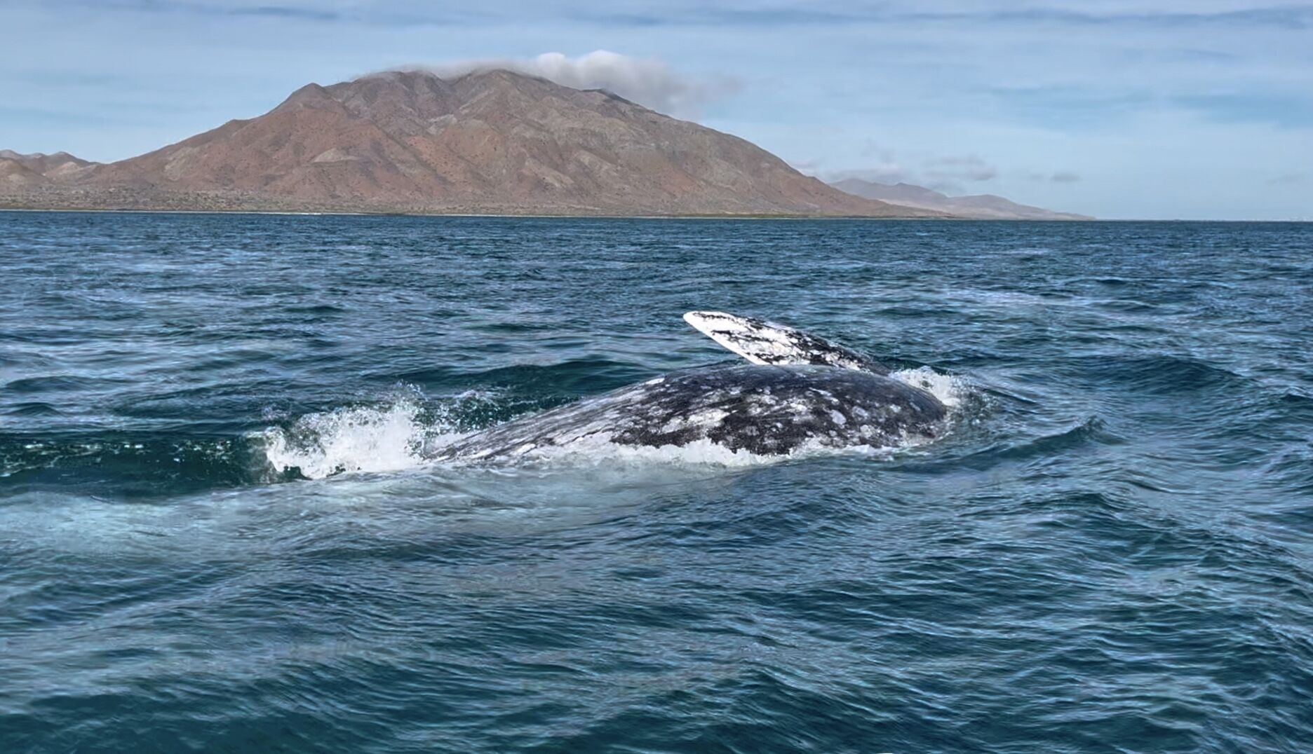 Early this morning we headed out for our first whale watching activity in the northernmost section of Magdalena Bay, near the town of Adolfo Lopez Mateos. To do this, coaches drove us over the Magdalena Plains, a huge flat desert area composed of alluvial, powder-like ground produced by erosion of the majestic volcanic mountain range on the eastern side of the peninsula, La Giganta. We also crossed the Santo Domingo agricultural area which is considered the green basket of the peninsula due to the existence of an enormous acquifer.