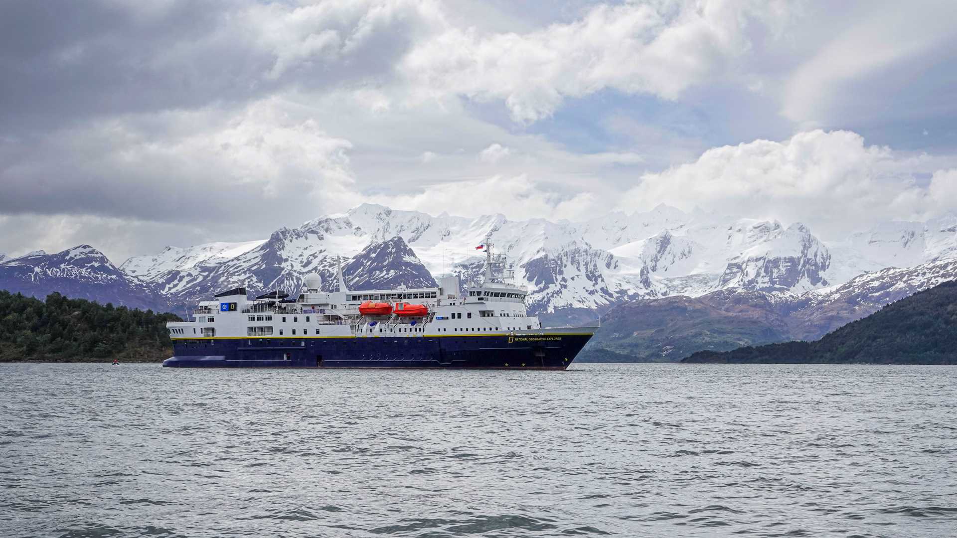 After cruising to the end of Sino Agostini for an early morning look at a glacier, National Geographic Explorer anchored just offshore of the Aguila Glacier so guests could shuttle ashore for some hikes in its direction. Once again, we were accompanied by some rain, but the winds were calm, and our rain gear kept us dry. Walking along the edge of this forest so full of vegetation was a reminder that this region of Patagonia is practically a temperate rain forest with a mix of coniferous trees and a thick understory of grasses and deciduous plants.