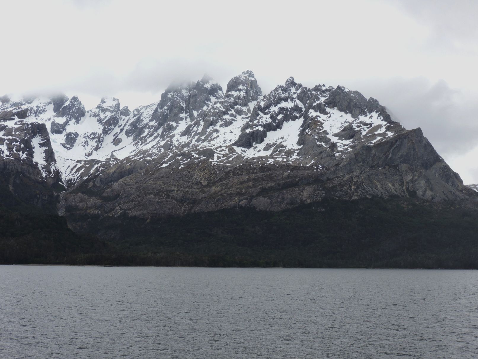 Conditions improved as we got into more protected waters in the late morning. The mountainous scenery is very impressive with obvious tree lines and snow lines. It is amazing how much vegetation exists in this rugged rocky environment. Much of the area is covered with thick growths of southern beech forests, often existing where one would think it impossible. These beech trees have the ability to grow in very thin soils and somehow hold onto the rocky substrate, in spite of devastating winds that can occur throughout the year.