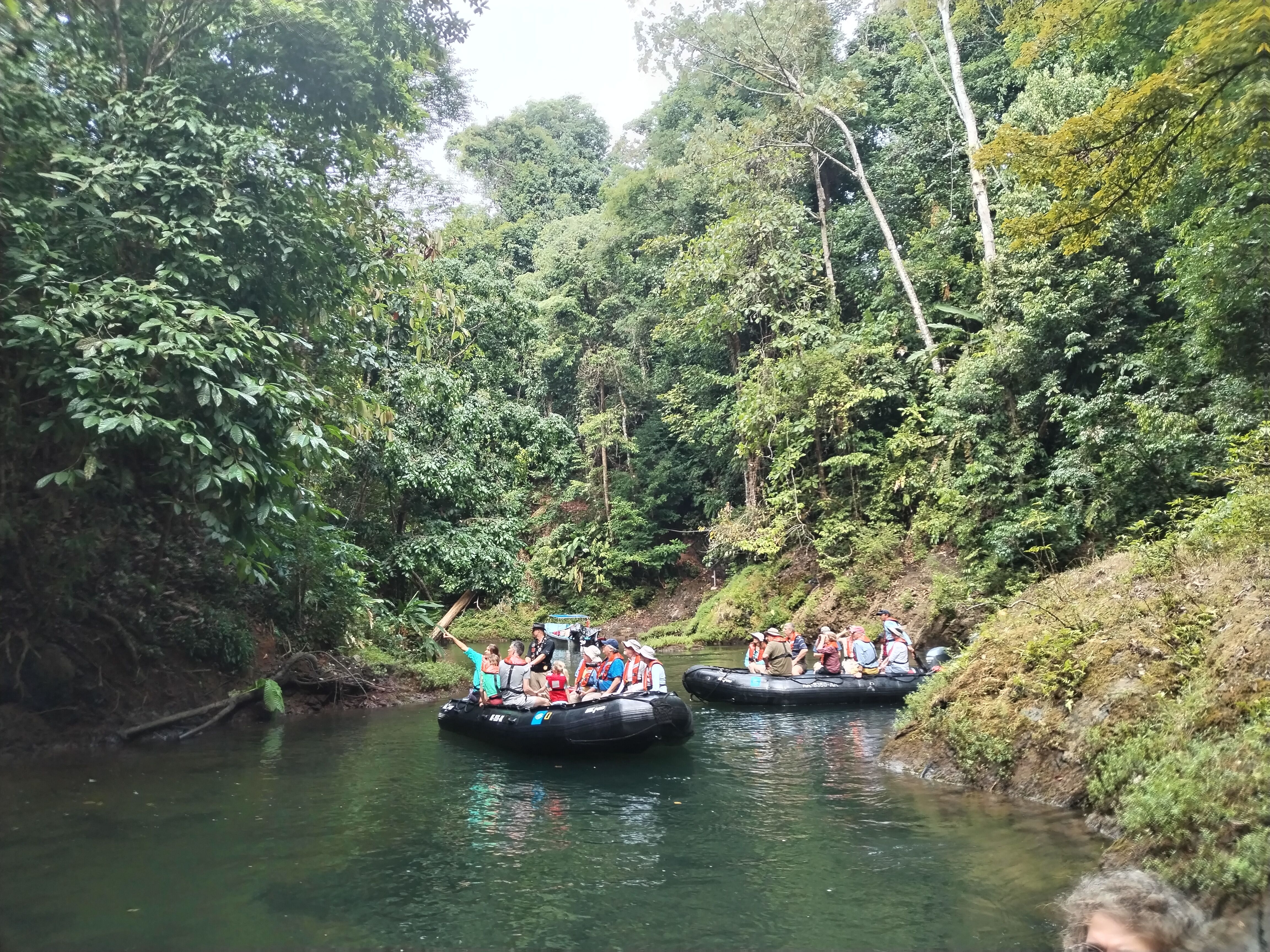 Later in the afternoon and after repositioning the ship, we offered various hikes and walks from Caletas Beach. Some guests went into the forest looking for monkeys, while others decided to do a power walk back to the Agujitas River bordering the coast. Along the way, we stopped several times to enjoy the beautiful small beaches that we encountered. At the end, we took the opportunity for a well-deserved and refreshing swim at the river at the exact time when the tide was getting up; this creates a pleasant and gentle current that allows us to flow upstream. We ended our last day of the trip enjoying the sunset over Cano Island, an archeological site that happens to be the oldest rock formation in this area.