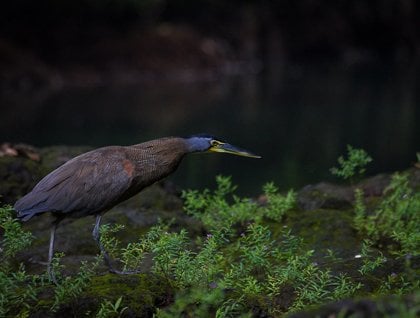 Today Amy, our wellness coordinator, began the stretching exercises on board National Geography Sea Lion. The daily activities started with an early expedition landing craft cruise and many of our guests joined us at 6:45 a.m. to explore an interesting mouth of a river. While we were heading to the river, a flock of pelicans greeted us by flying in a v-formation very close to us. In the distance, the haze covered the tree top of the forest that surrounds Drake Bay. Right at the entrance of the Agujitas River we got to see a flock of seven chestnut-mandible toucans, bare-throated tiger herons, Amazon king fishers, and several other birds.
