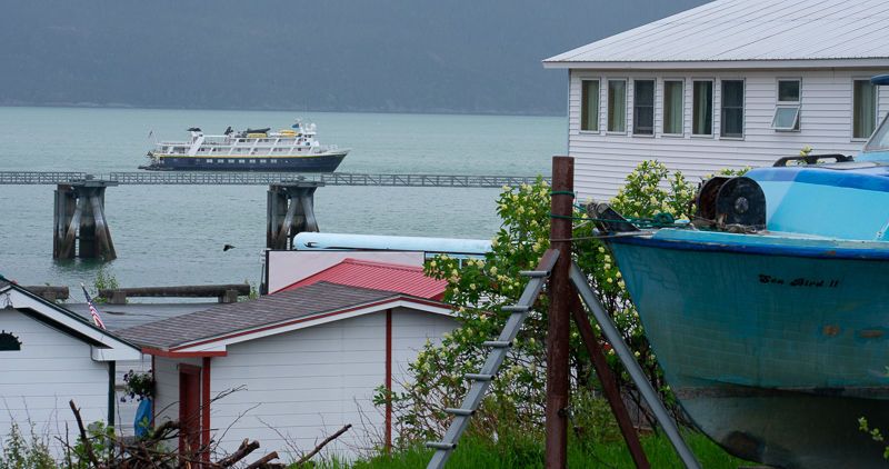 Saturday morning found the National Geographic Sea Bird anchored outside Haines, Alaska’s adventure capital. We kicked off the day with several activities, including river-rafting, biking, hiking, and flightseeing. The raft trip began with a walk through Klukwan, a traditional Alaska native museum, and a dance demonstration in the Long House. We also had a chance to bike alongside Mount Ripinsky to beautiful Lake Chilkoot.