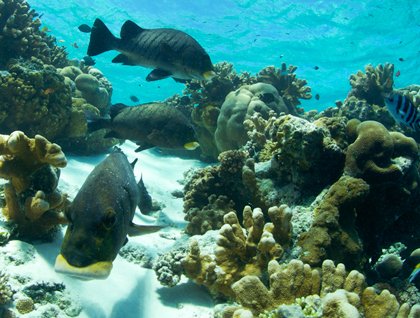 As we approached the island early this morning seabirds were streaming out of the crimson rising sun. We quickly took to the water to enjoy an outer reef snorkel. Sea turtles swam amongst us, having finished laying their eggs on the beach last night. The entire island and one kilometer offshore is off limits to fishing, and it really shows. Big fish were everywhere, darting amongst the healthy coral. This is paradise for snorkelers and divers.