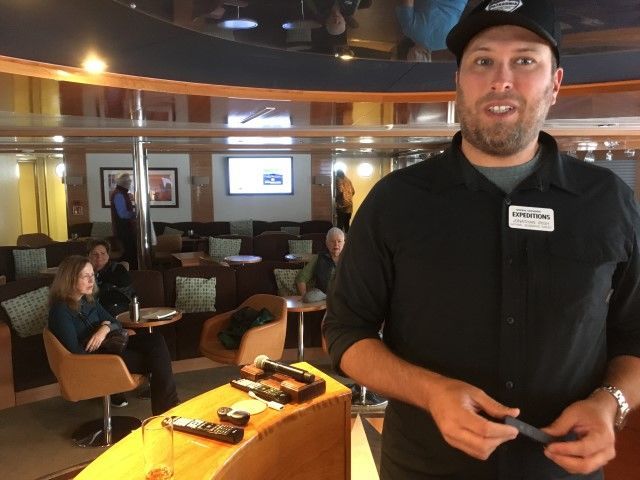 Johnstone Strait proved its reputation for an abundance of killer whales by giving us views of orcas immediately upon leaving Alert Bay. Pacific white-sided dolphins joined in on the fun as they swam over to bow ride the ship for a short while. In the afternoon we gathered in the lounge where David Cothran conducted an informal interview of National Geographic photographer Flip Nicklin and his protégé Ralph Pace, drawing out some of their ideas about their work and its place in their lives. For dinner, the galley crew swapped places with the expedition staff for a fun evening which was followed by a competitive natural history trivia night.