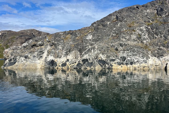 After having spent a pleasant night in the large Buchanan Bay, we spent some time waiting for the fog to dissipate in Alexandra Inlet on the southeast coast of Ellesmere Island. Eventually, National Geographic Endurance entered the open waters of Smith Sound on her way to Greenland. “Open” is a relative term in this part of the world, as extensive areas were covered by sea ice. We all enjoyed admiring the ship’s superb ability to navigate in such conditions. It was particularly interesting to witness the formation of new layers of ice over the ocean as temperatures lowered during the past couple of days. Countless photographs and videos were taken as the ship maneuvered around the ice, and we never tired of admiring the sheer beauty. We saw several ice floes marked by large tracks and eventually found the indisputable king of the north, a polar bear! What a great way to say goodbye to the Canadian Arctic.
