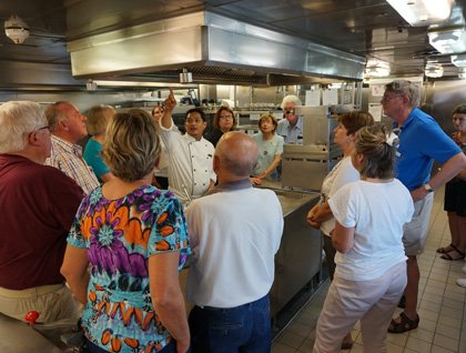Our own lunch treat came just before the announcement of the meal itself, as an adult polar bear was spotted walking on first-year sea ice far in front of the ship. Hats, parkas, and gloves were quickly donned and cameras and binoculars readied for deployment as we shuffled out, each to our favorite viewing platform on deck. Our walking bear chose to lay down behind an ice hummock and seemed as if it might snooze the afternoon away, but just as we had decided to turn and leave it decided to walk directly towards the ship and see just what we were all about. Cameras clicked and whirred as hundreds of gigabytes of photos were seemingly instantaneously captured. Our bear was the perfect subject, turning this way and that, and it finally had enough of the bear paparazzi, or deciding we weren’t going to turn into a meal, it turned and walked away across the ice.