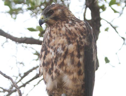 Our investigations and view came down to water level for the afternoon. Navigating up Nauta Cano by skiff or by kayak both endeavors were richly rewarded. Three sightings of three-toed sloths and a tree full of squirrel monkeys were found before the kayakers had even started to paddle. Howler monkeys could be heard in the distance. With the falling water level of the river, fish are being concentrated into smaller and smaller pools. Great egrets, snowy egrets, and Cocoi herons are taking advantage of this dining opportunity and dozens of these birds lined the banks of the waterway. Ringed and Amazon kingfishers were to be found on practically every other tree branch and black-collared hawks were in force as well. One of the hawks was sighted flying with a fish in its talons.
