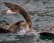 At lunch the ship is parked at the confluence of the large chocolate-colored Maranon River which drains the Andes, so its color reflects the fact it is full of sediments/nutrients. The Maranon merges here with the much smaller Nauta Canon River, a nutrient-poor river with the dark color of tea from all the tannins is the water. The merging of these 2 rivers stirs up nutrients and therefore as we eat lunch we get to enjoy a lot of fish, terns, and pink river dolphins fishing here.