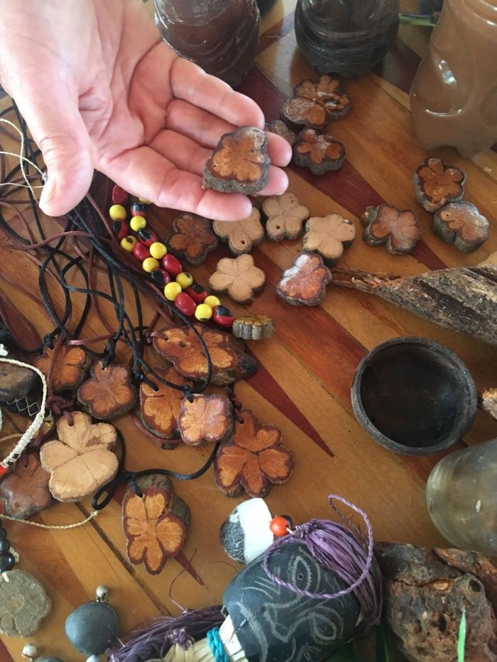 By afternoon the weather had cleared, so we boarded the skiffs for a short ride to the Amazon Natural Park Reserve. We paddled and were paddled across a small man-made lake in wooden catamarans. We spied our first monkeys – dusky ti tis! Our guides led us thru the forest on a muddy and slippery path, climbing small hills at times, and all along the way they were teaching us and pointing out the interesting trees, seeds, ants, lizards and anything they noticed. We are all very interested to see and learn about whatever the guides can find!