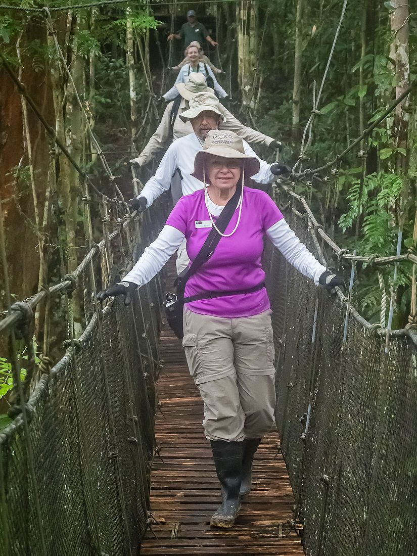 This morning’s treasured finds included a brown-throated sloth, a large green anaconda as well as a red-tailed boa constrictor, red-backed poison frogs, and a pink-footed tarantula to add to the list. An additional highlight to this park is the cable suspension bridge system that allows us to safely access the mid-canopy level of the rainforest.