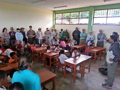 The rivereños are great, happy people that have everything that they need in life. Their smiles reveal everything, and they are all as friendly as can be. Kids were in school, so we took the opportunity to visit them, and with the permission of their teachers, we stepped into the classrooms to meet them and to let them know how happy we were to be visiting their community. The visit evolved into a lot of chatting and interaction with the kids, that an exchange of songs between the kids and our guests sealed a “lazo de amistad” (a bond of friendship) which was precisely the song chosen by the kids. In exchange, it was great to see our guests performing a couple of songs pulled out of their childhood times, and with chants and dance, we departed this lovely land, full of smiles, colors and people worth their weight in gold!