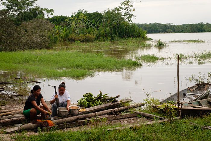 This morning we visited the community of Amazonas, where we were able to interact with locals and learn about how they live. We saw how palm fibers are dyed for handicrafts, learned about the foods they eat, visited a school, and heard about the efforts of Minga Peru, an organization that empowers women in Amazonian villages. We ended the day exploring the mirror-like waters of Clavero Lake, where we looked for more wildlife and watched the full moon rise over the canopy on our way back to Delfin II.