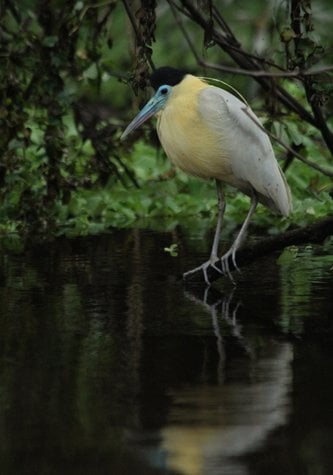 In the afternoon, Nauta Caño was our destination, and activities included kayaking and skiff rides. It was a very hydrating ride as the skies let loose with a gentle afternoon rain. This didn’t seem to bother the two troupes of squirrel monkeys we observed, the 16 black-collared hawks we found or the elegant capped heron pictured here in our daily expedition report.