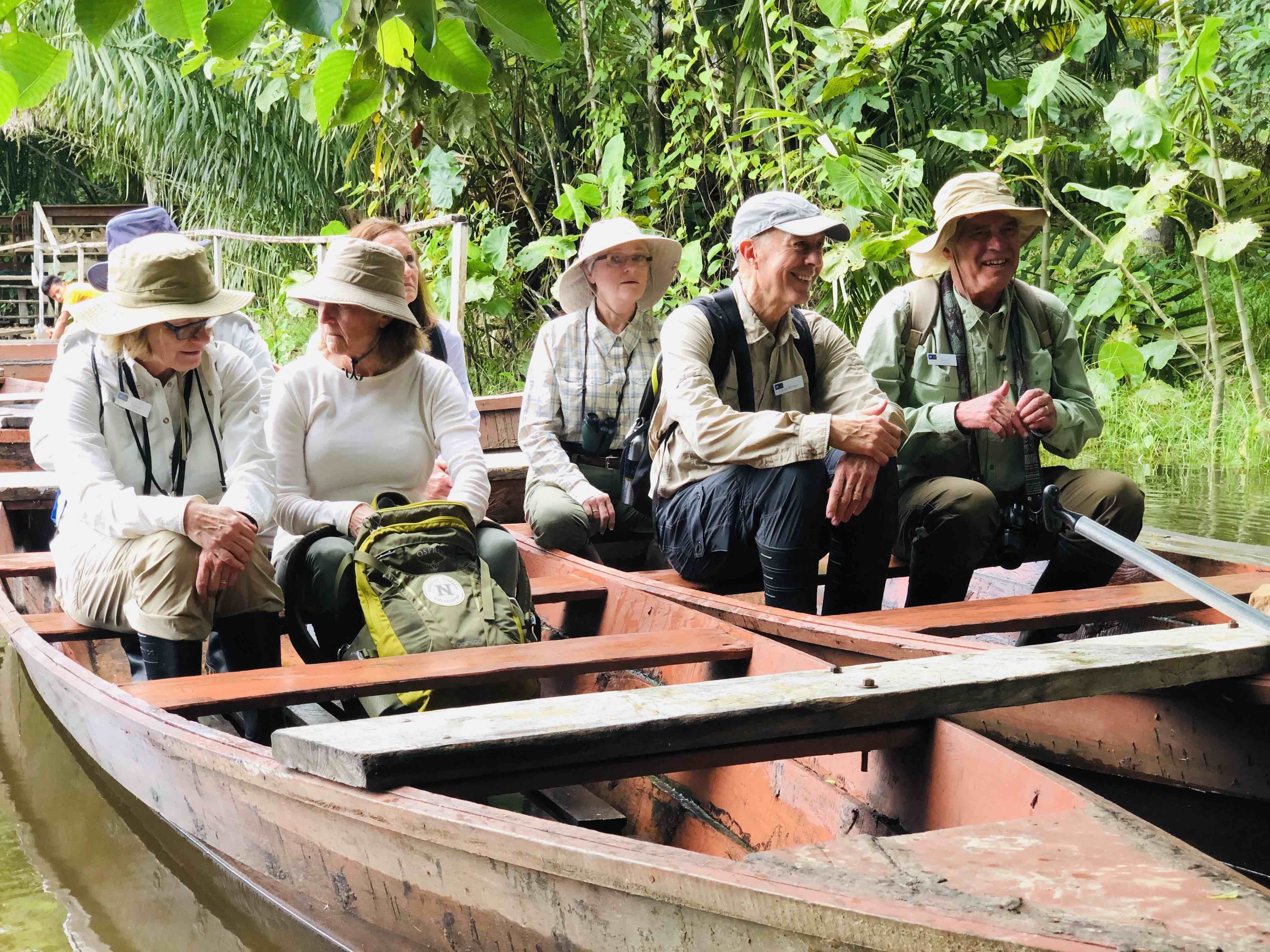 Leaving Delfin II at 06:00 for our morning skiff ride, we explored the Marayali River. The birds were up and working on obtaining breakfast while the three-toed sloths chose to sleep the morning hours away. On our way back to the ship, we encountered a snail kite having its namesake prey for breakfast right in front of us! The rest of the morning was spent at Amazonas Village getting an introduction to life along the river. Demonstrations of how to get sugar water out of cane, how to make and dye fiber for baskets and other items, as well as food preparation were given. We chatted with children who had monkeys as pets! Our evening was topped off by a toast to the beginning of the actual Amazon River, where the Marañon and Ucayali Rivers converge. Salud! This is my final daily expedition report as a full-time Lindblad employee. I am retiring after 21 years as a National Geographic certified photo instructor and naturalist, ready to begin a new life of travel and exploration. I want to give a big thank you to all of those Lindblad guests whom I have traveled with over the years, and I will leave you with these words: Travel as often as you can, as far as you can, for as long as you can. May God and your luggage be with you!