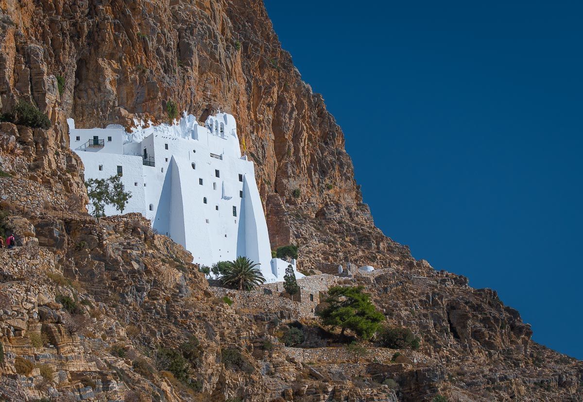I love Amorgos for many reasons. The Big Blue—a fantastic film I watched as a young student—was filmed here. The island is a little bit off the beaten track, which is always a refreshing experience. Dimitris, our driver, took us to the most spectacular building of the Aegean! A monastery is perched like an eagle’s nest on the cliffs. We encouraged our guests to hike all the way to the top, and I am sure nobody regretted it. Countless photo opportunities and amazing views were available all the way to the top.