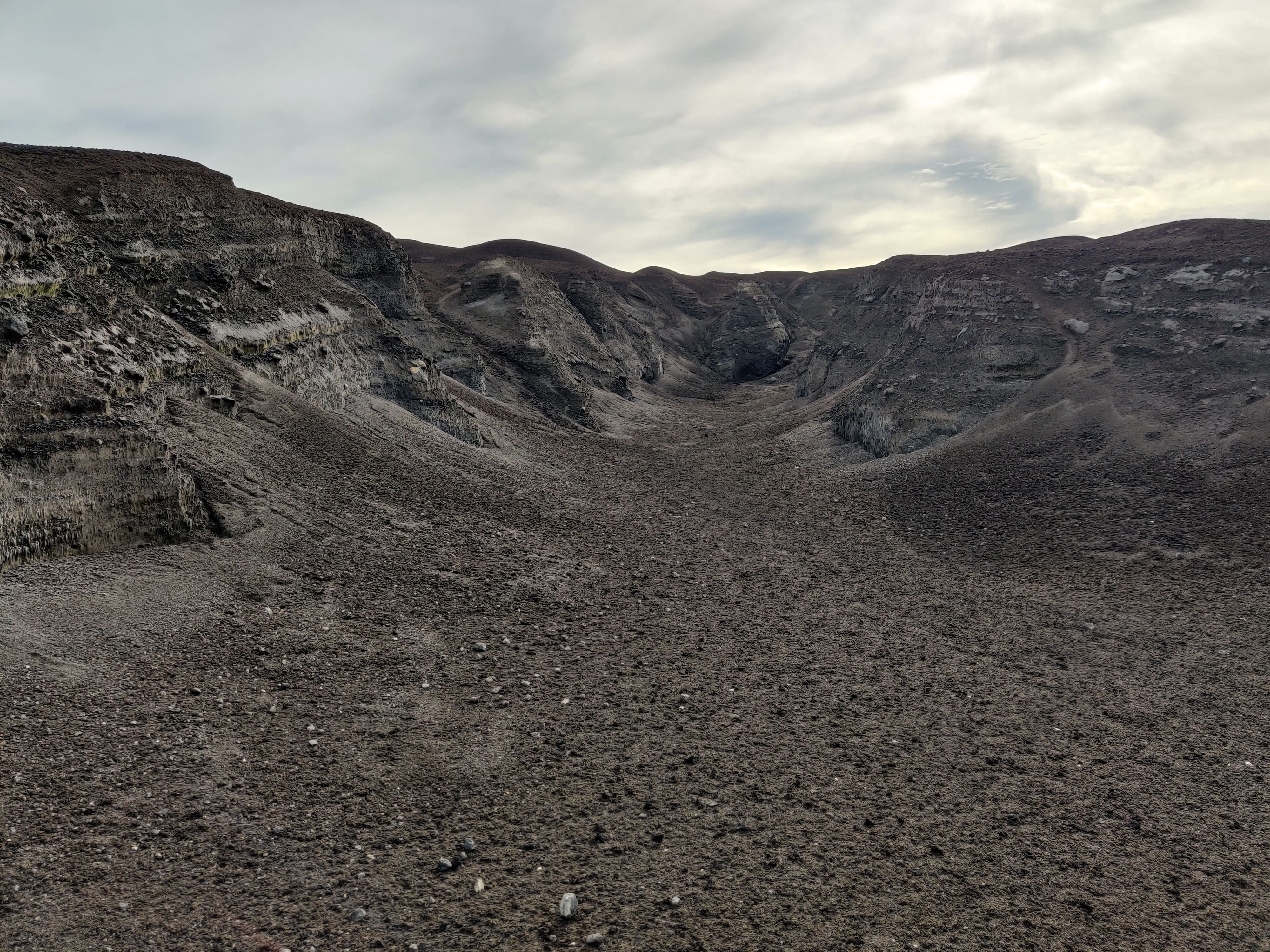 After undergoing a rather lengthy clearance with the local authorities, we anchored off the east coast of Anak Krakatoa in the early afternoon and took everyone ashore to explore what must be the most famous volcano in the world. It is pretty barren of vegetation today, but up until four years ago, there was an extensive forest scrub environment near our landing place. The plant life was destroyed and washed away by a tsunami in 2018, which was caused by an eruption and underwater collapse on Anak Krakatoa. It was interesting to explore the eroded ravines (photo 1) because we could clearly see the exposed layering effect caused by many years of successive eruptions. Some distinct layers showed signs of major eruptions that included lots of ejected missiles and bombs of solid basalt, whereas most of the layers consist primarily of fine volcanic ash (photo 2). Many of us hiked up to the edge of the main crater (photo 3) and got a real feel for the power of the place. We could not actually see the vent itself from this position, but the sound of the escaping gas was awesome. Everyone agreed it sounded like a bunch of huge jets taking off, one after another, from some unseen airport. We had everyone back aboard by sunset. A little later, the ship circumnavigated the island, and we were entertained by a distinctive red glow at the crater region. Those with binoculars could actually see glowing missiles and small rocks ejected high into the sky. Seeing and landing on this historically significant volcano was like a dream come true for most of us.