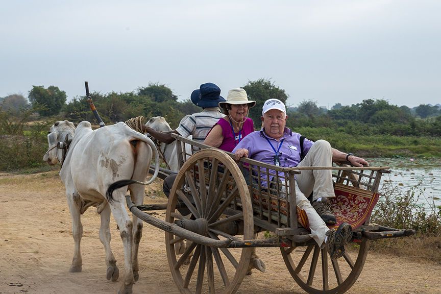 As the afternoon began cooling off, we disembarked Jahan at our new destination of Koh Oaknhatey, a small Island in the Mekong not far from the capital city Phnom Penn. A collection of local tuk-tuks, motorbikes with transport carriages conveyed us to our destination of a local silk farm. After a demonstration of the ancient craft we had the opportunity to purchase some of the silk products.