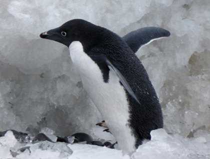 Midmorning the curtain lifted and the stage was set for our first adventure of the day. Brown Bluff rose above us as we set foot upon the shore at the tip of the Tabarin Peninsula. Giant golden ventifacts, boulders tumbled from high above long ago and sculpted by the wind, were the gateway to a relatively quiet community beyond. Scruffy looking gentoo youth meandered about the beach, periodically pestering adults that had somehow negotiated an icy barrier from the sea. Their previous suburban communities were mostly unoccupied now. Nearby, where just weeks ago a busy city thrived, only ruins defined by pink soil told of past occupation by tens of thousands of Adélie penguins. Their breeding cycle finished, these penguins of the ice had all gone to sea leaving only three. Off shore apparently satiated leopard seals lounged on ice floes as did sleek and silky crabeater seals. As the tide fell and bergy bits stacked themselves on the shallow reef, snow once again stole of view of the magnificent englacial volcano above our heads.