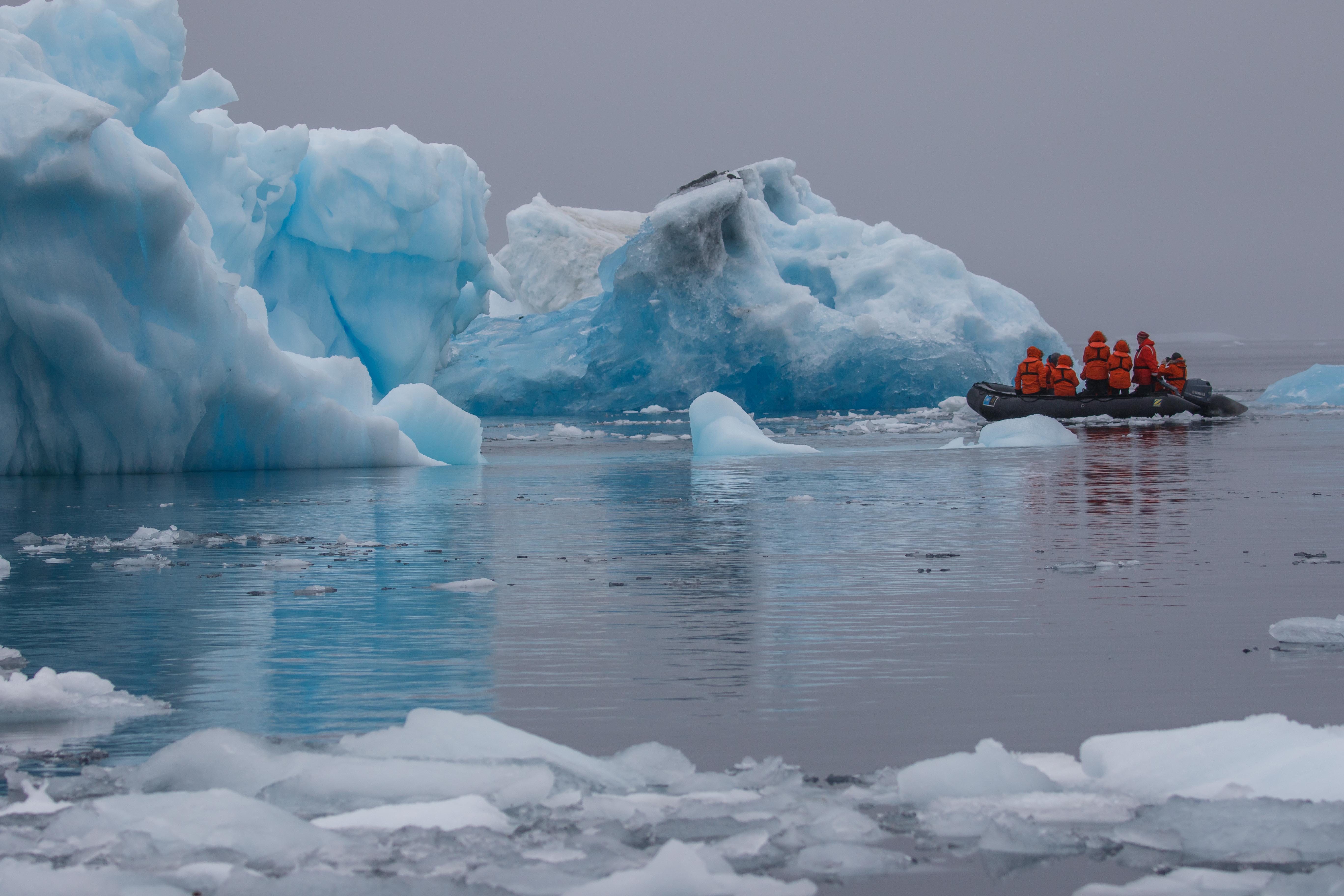cruise around a multitude of icebergs throughout the area. On scattered bergs