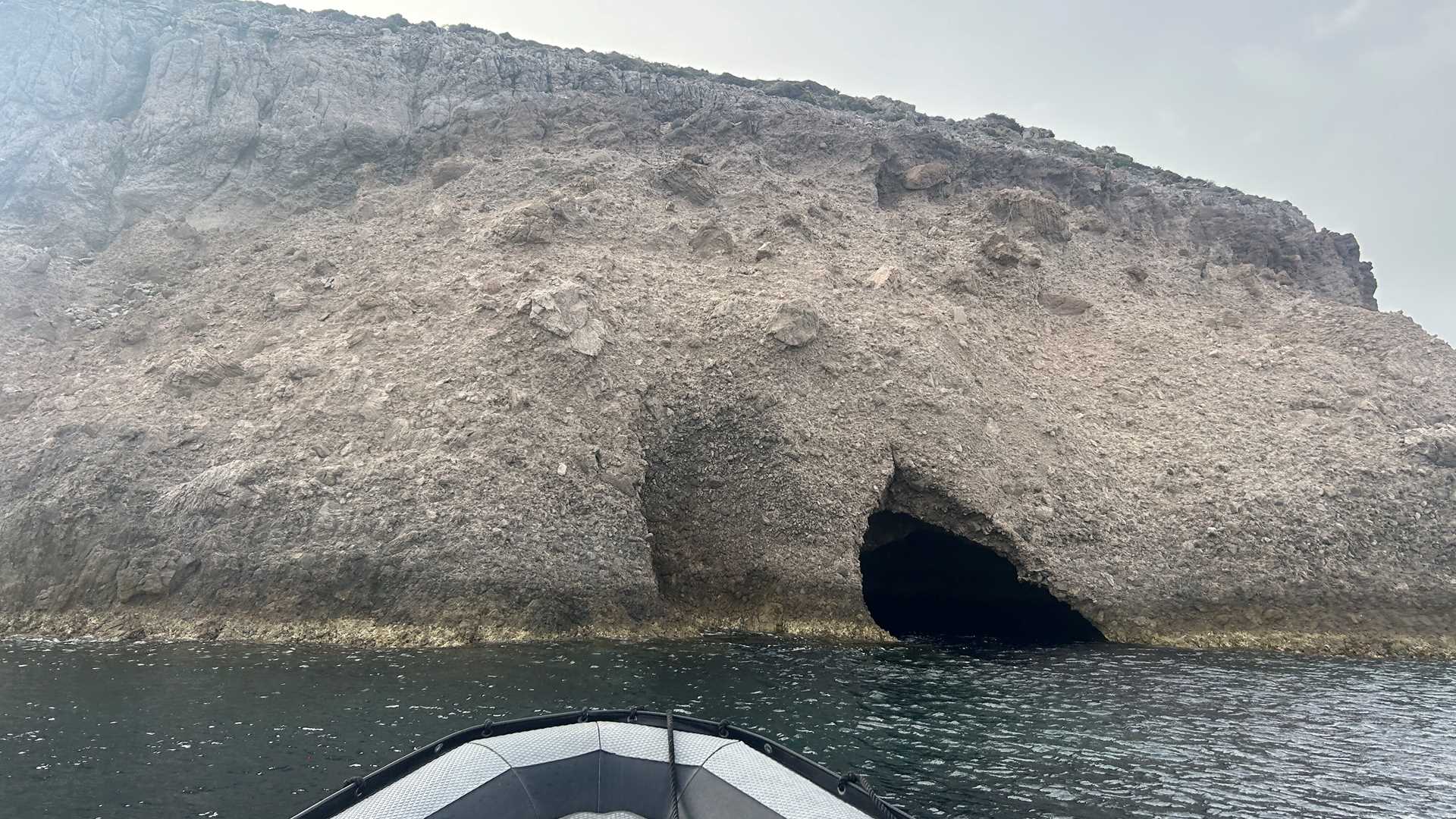 This morning, we awoke to strong winds and beautiful scenery. We began the day’s adventure with a Zodiac cruise around Despotiko Island and along the cliffy shoreline of Antiparos. Along the cliff-lined coast, there were many sea caves which we accessed with the shallow-draft Zodiacs. We saw lots of interesting geology and also stopped at the temple ruins of Despotiko, devoted to the god of fertility and sun, Apollo.