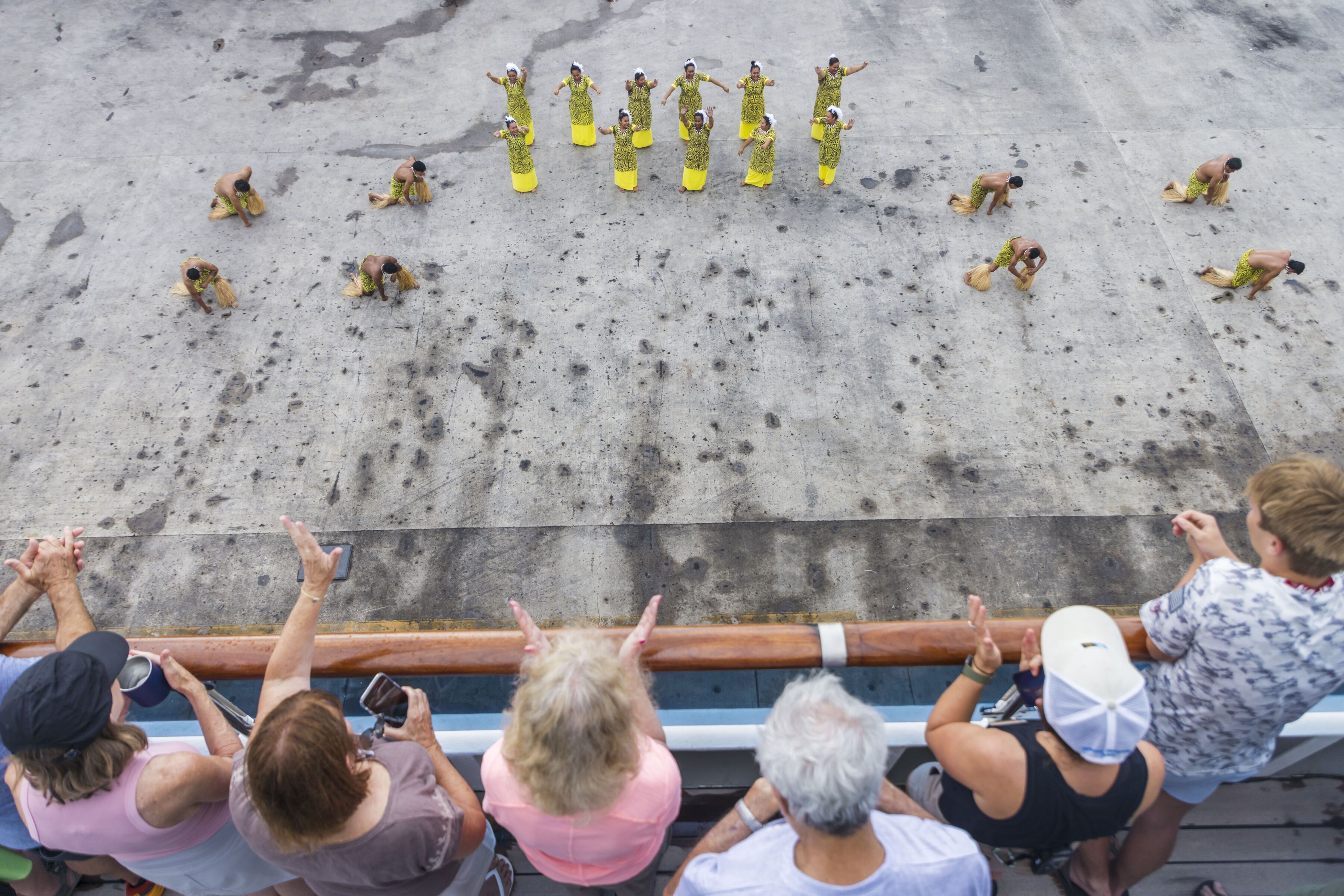 This morning, National Geographic Orion docked at Apia, the capital of Samoa. After two days at sea, the opportunity to stretch our legs on land was welcomed by all. Guests enjoyed a hearty feast of traditional Samoan food for lunch followed by an afternoon at the cultural centre and a stroll around the colourful city market. As the sun set over the South Pacific, we were treated to an exhibition of spectacular fire dancing on the dock.