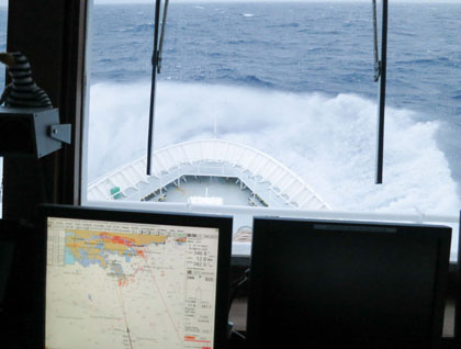 Early in the morning, still nearly 50 miles out as the sky lightened, one could spot many species of seabirds soaring over top the windblown swells. With occasional swells breaking over the ship’s bow as she pitched, we saw downward sooty shearwaters, black-browed albatross, and even the majestic giants of the winds, the wandering and southern royal albatross, make life out on this tormented body of water look like a walk in the park. To us it seems a terrible thing to be out in such conditions, but for these masters of the wind and sea it's just another day at the office. Perhaps the most amazing thing to witness is an albatross at home over the ocean, and even more incredible as in the case of the southern royal albatross, these birds have ranged here all the way from New Zealand. At 0530 we were sailing over 3000 meters of water and shortly before 0800 we had begun to reach the Continental shelf, a steep incline where ocean currents begin to swell upwards bringing with it the rich nutrients from below producing a very productive and predictable source of food for all marine life, which is why these birds are here.