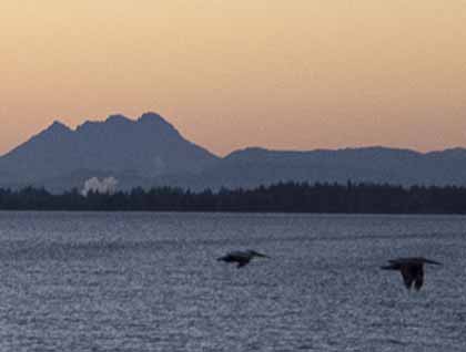 At first light, National Geographic Sea Bird was on the Astoria approach downstream passing under the Astoria-Megler Bridge on her way to the Columbia River Bar. By the time the sun rose, we were treated to a magnificent view of the bar with ocean swell crashing in the form of thunderous waves across the sandy shallows. The otherwise calm conditions that prevailed in advanced of the next storm front allowed us to sail further down river than had been accomplished before—it was the proverbial ‘calm before the storm’!