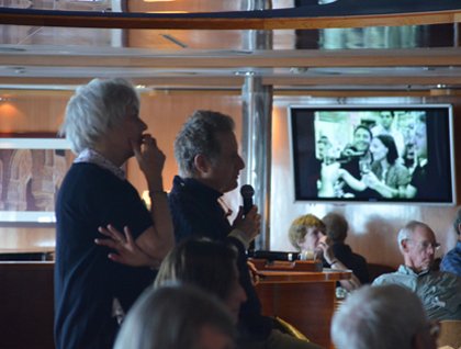 Both the Azores and Madeira had been claimed by Portugal before the close of the second decade of the 15th century. By the close of the century, Bartholomew Diaz had rounded the Cape of Good Hope, Vasco da Gama had followed in his wake to reach Calicut on the Indian subcontinent, and Pedro Cabral had sighted the coast of South America. Following the first Columbus voyages to the New World, sponsored by Spain, territorial rivalry between two European powers went to arbitration: Pope Alexander VI adjudicated between the rival monarchies of Portugal and Spain, with Spain winning territory west of an imaginary longitudinal line drawn 370 leagues west of the Cape Verde Islands, an archipelago claimed by Portugal in 1447, so that today Brazil is Portuguese-speaking whereas the remainder of South America speaks Spanish. Portugal was propelled in the course of that fateful 15th century from a poor country on the Atlantic fringe of a European continent that had known centuries of Mediterranean trade, to become a global maritime power that could turn its back on a Mediterranean commercial world that would slip slowly but inexorably into decline. Spain’s New World colonies traded in gold and silver, from great mines like Potosi; Portugal developed plantation agriculture based on African slave labor. Of the 11 million Africans transported from the Old World to the New, some four million were transported in Portuguese ships to Brazil. This compared with the half a million African slaves transported to eth American colonies. Since Columbus’ second voyage of settlement in 1493 there has been a massive exchange of flora and fauna between the Old World and the New; there are now two Africas on either side of the Atlantic Ocean, a phenomenon unique in human history. The waters through which we have been sailing today have been wonderfully calm. At breakfast time a few of us were lucky enough to see a group of ten migrating great herons fly across our bow; we have looked down on migrating turtles and met a pod of dolphins. But half a millennium ago these waters witnessed momentous developments in human history, ushering in our increasingly globalized world. A series of presentations during the day reviewed the Portuguese world we have left behind us and prepared us for the climax of Semana Santa in Seville, our Spanish destination tomorrow.