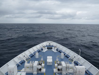 The quiet dining room at breakfast was a good indication that we were once again crossing the Drake Passage. After 6 busy days exploring the Antarctic Peninsula, the choppy seas were a good excuse to sleep-in and get some rest from our adventurous week. Since conditions were not ideal to be out on the decks, today was a good day to visit the bridge and chat to our Captain and Officers about the logistics of such a journey. It was intriguing to see the route map of travels and many members traced our path on their own maps-a great souvenir to take home!