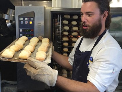 As interesting as this event is, the first in a series over the next few weeks, there is another late afternoon event with more immediate gratification. On the sundeck, at the back of the ship, the barbeque has been lit. In the bakery, Oscar has made the buns. In the galley, the tender steak has been trimmed, sliced, and beaten (tenderized) and the garnishes prepared. Let the Teatime BBQ begin. I lend my not inconsequential support by sipping red wine and dropping garnish on the deck. Our Head Chef Magnus cooks the little steaks (lomitos); Hotel Manager Patrik and Provision Master Anders put together the sandwiches for each person, to order (how you like it). After a job well-done baker Oscar joins us, eating a lomito and dropping garnish on the deck.