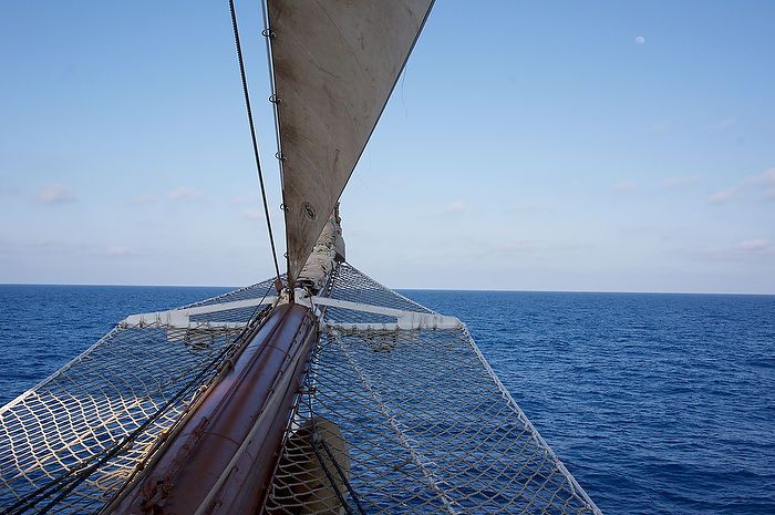 Sailing east is the reverse from how the Greeks did it 3,000 years ago, when they went west, colonizing massive Sicily. We are now crossing, with a gentle northwesterly wind, the Ionian Sea to east. It’s a moment of relaxation where all of us can enjoy how elegant and gentle Sea Cloud is under sails.