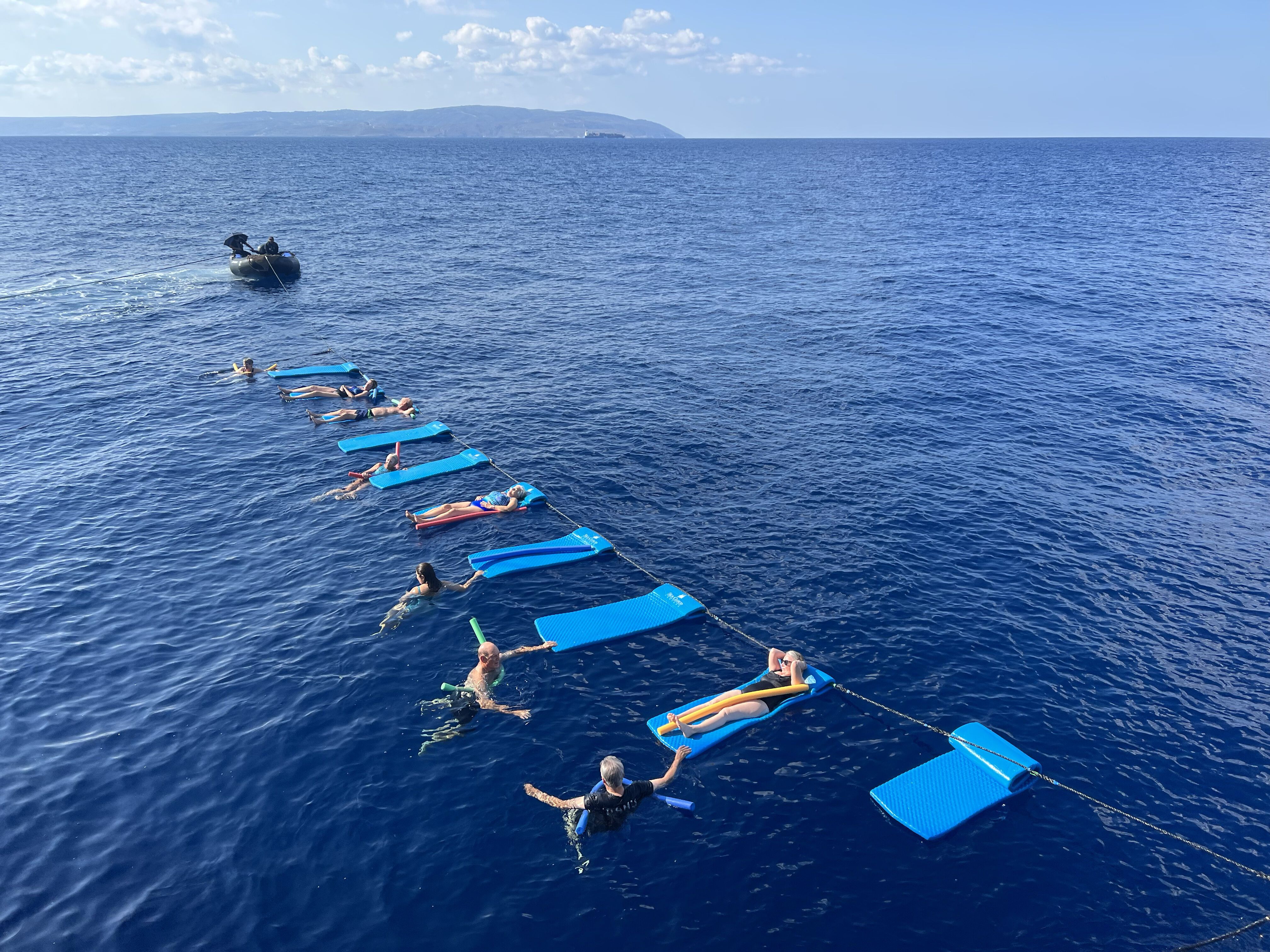 Today, we spent the day at sea along the southern coast of Peloponnesus. Our action-packed morning started with a smart phone photography presentation from our photography instructor. Then, the captain found us a nice swimming spot, and guests swam from the boat. Afterwards, our two Greek guides, Effie and Laura, gave an introduction to Greece. We spent the afternoon listening to the captain narrating as sixteen sailors set the sails. We watched as the sailors climbed up and down the masts to unclip the sails before using ropes to release them. Guests were invited to go to the bow to take photos and talk to the sailors. Ice cream was served at afternoon tea followed by our briefing for tomorrow’s activities at Katakalon.