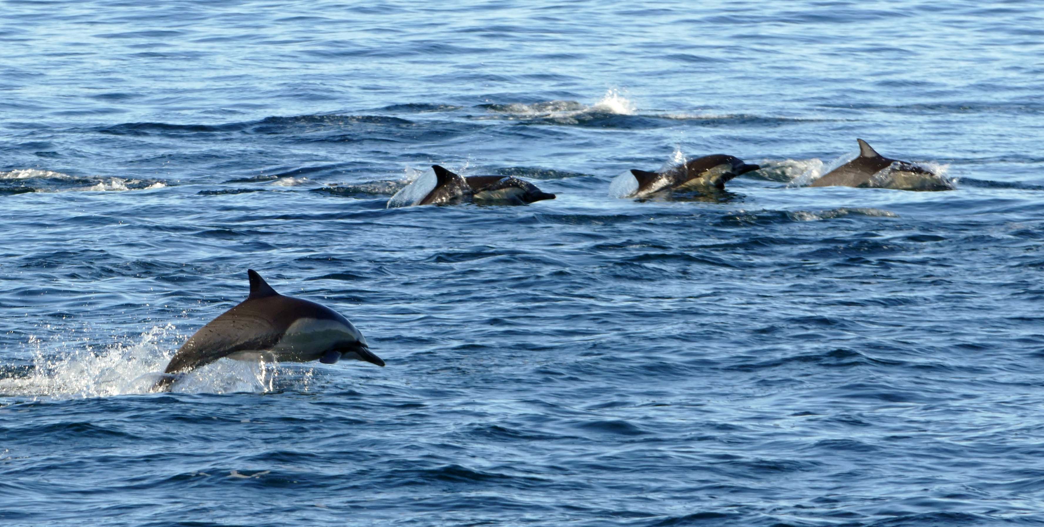 Following our calm, starry, restful night northbound in the Pacific Ocean, early light softened the rocky edges of Isla Santa Margarita, one of the two impressive mountainous islands that border the large expanse of Magdalena Bay; the estuary that hosts the California gray whale nursery where we’ll spend the next three days. Bright fog streamed out of La Entrada, the entrance into the bay, and created fog bows and interesting atmospheric effects around us. A pod of long-beaked common dolphins delighted everyone and their graceful airborne antics gave us plenty of opportunity to practice photo techniques.