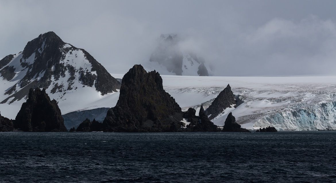 Finally, around midday, Antarctica began to peak its jagged cliffs out of the water and fog! A spot of sunshine illuminated nearby glaciers and the weather let us take in a few glimpses before more clouds came rolling in.