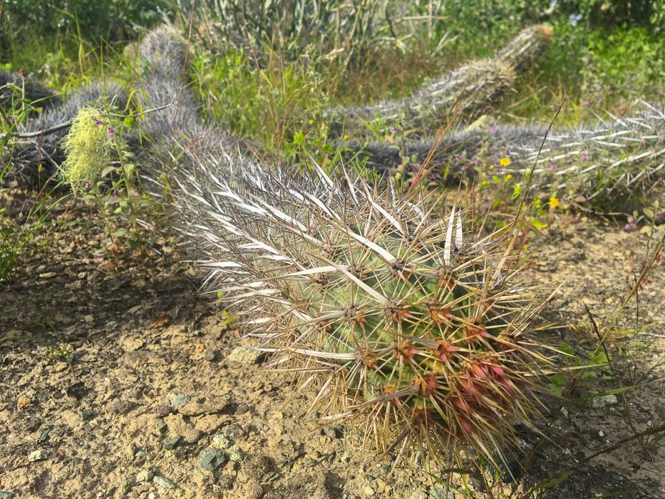 Our destination for the morning was a dirt road, which leads to one of the most magnificent long sandy beaches in the world. On the way, we could learn more about desert plant adaptations, and the species of plants that are unique to Magdalena Island, or at least endemic to the general area that surrounds the bay. One of the most representative plants is the creeping devil, a columnar cactus that has adapted to grow sideways along the ground, and its spines are so dense, that they offer full protection against solar radiation or any herbivores that may try to feed on it.